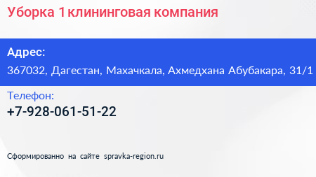 Уборка №1, клининговая компания по адресу 367032, Дагестан, Махачкала, Ахмедхана Абубакара, 31/1 в дальнейшем Организация, размещена в следующих категориях: