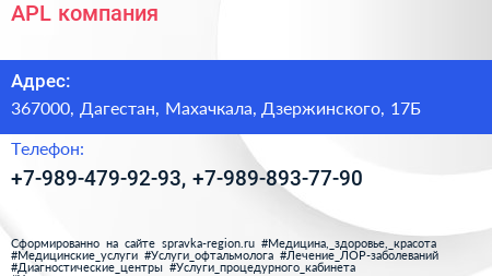 APL, компания по адресу 367000, Дагестан, Махачкала, Дзержинского, 17Б в дальнейшем Организация, размещена в следующих категориях: