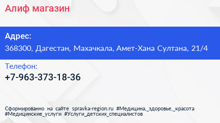 Алиф, магазин по адресу 368300, Дагестан, Махачкала, Амет-Хана Султана, 21/4 в дальнейшем Организация, размещена в следующих категориях: