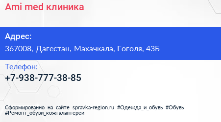 Ami-med, клиника по адресу 367008, Дагестан, Махачкала, Гоголя, 43Б в дальнейшем Организация, размещена в следующих категориях: