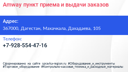 Amway, пункт приема и выдачи заказов по адресу 367000, Дагестан, Махачкала, Дахадаева, 105 в дальнейшем Организация, размещена в следующих категориях: