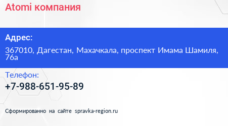 Atomi, компания по адресу 367010, Дагестан, Махачкала, проспект Имама Шамиля, 76а в дальнейшем Организация, размещена в следующих категориях: