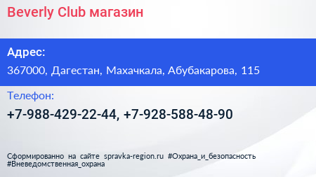 Beverly Club, магазин по адресу 367000, Дагестан, Махачкала, Абубакарова, 115 в дальнейшем Организация, размещена в следующих категориях: