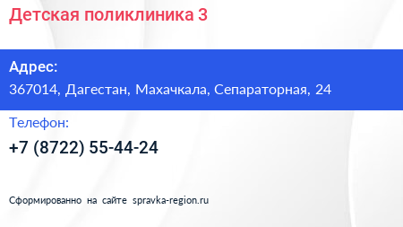 Детская поликлиника №3 по адресу 367014, Дагестан, Махачкала, Сепараторная, 24 в дальнейшем Организация, размещена в следующих категориях: