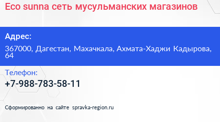 Eco sunna, сеть мусульманских магазинов по адресу 367000, Дагестан, Махачкала, Ахмата-Хаджи Кадырова, 64 в дальнейшем Организация, размещена в следующих категориях: