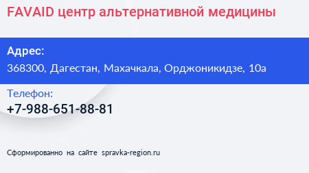 FAVAID, центр альтернативной медицины по адресу 368300, Дагестан, Махачкала, Орджоникидзе, 10а в дальнейшем Организация, размещена в следующих категориях: