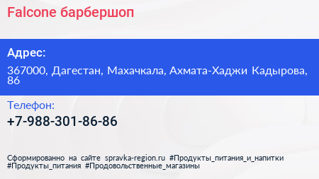 Falcone, барбершоп по адресу 367000, Дагестан, Махачкала, Ахмата-Хаджи Кадырова, 86 в дальнейшем Организация, размещена в следующих категориях: