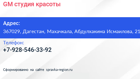 GM, студия красоты по адресу 367029, Дагестан, Махачкала, Абдулхакима Исмаилова, 21 в дальнейшем Организация, размещена в следующих категориях: