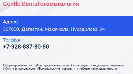 Gentle Dental, стоматология по адресу 367000, Дагестан, Махачкала, Нурадилова, 94 в дальнейшем Организация, размещена в следующих категориях: