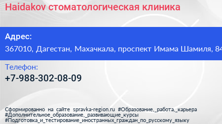 Haidakov, стоматологическая клиника по адресу 367010, Дагестан, Махачкала, проспект Имама Шамиля, 84 в дальнейшем Организация, размещена в следующих категориях: