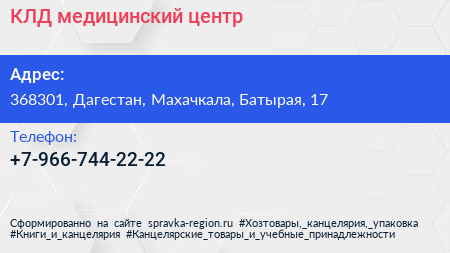КЛД, медицинский центр по адресу 368301, Дагестан, Махачкала, Батырая, 17 в дальнейшем Организация, размещена в следующих категориях:
