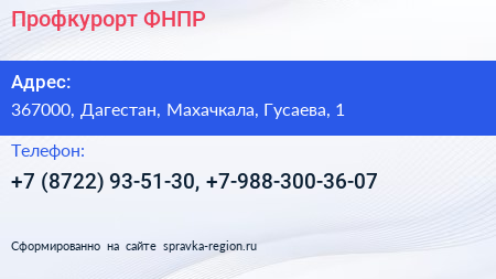 Профкурорт, ФНПР по адресу 367000, Дагестан, Махачкала, Гусаева, 1 в дальнейшем Организация, размещена в следующих категориях: