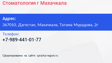 Стоматология, г. Махачкала по адресу 367010, Дагестан, Махачкала, Татама Мурадова, 2г в дальнейшем Организация, размещена в следующих категориях: