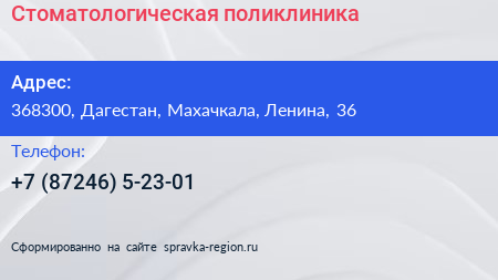 Стоматологическая поликлиника по адресу 368300, Дагестан, Махачкала, Ленина, 36 в дальнейшем Организация, размещена в следующих категориях: