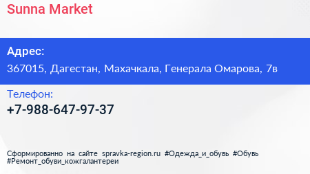 Sunna Market по адресу 367015, Дагестан, Махачкала, Генерала Омарова, 7в в дальнейшем Организация, размещена в следующих категориях: