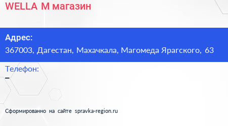 WELLA-M, магазин по адресу 367003, Дагестан, Махачкала, Магомеда Ярагского, 63 в дальнейшем Организация, размещена в следующих категориях: