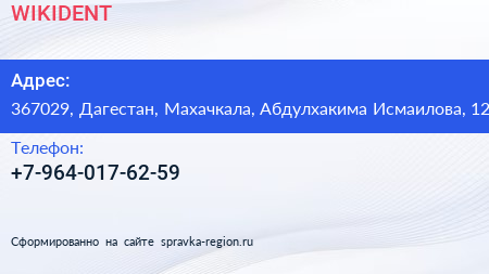 WIKIDENT по адресу 367029, Дагестан, Махачкала, Абдулхакима Исмаилова, 12 в дальнейшем Организация, размещена в следующих категориях: