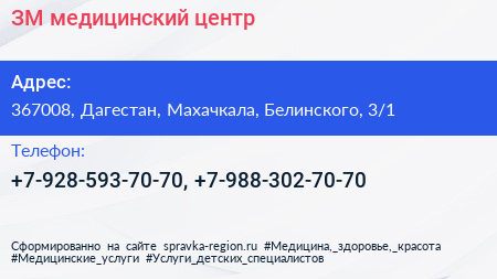 ЗМ, медицинский центр по адресу 367008, Дагестан, Махачкала, Белинского, 3/1 в дальнейшем Организация, размещена в следующих категориях: