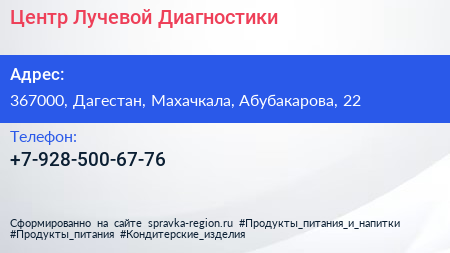 Центр Лучевой Диагностики по адресу 367000, Дагестан, Махачкала, Абубакарова, 22 в дальнейшем Организация, размещена в следующих категориях: