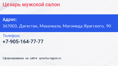 Цезарь, мужской салон по адресу 367003, Дагестан, Махачкала, Магомеда Ярагского, 90 в дальнейшем Организация, размещена в следующих категориях: