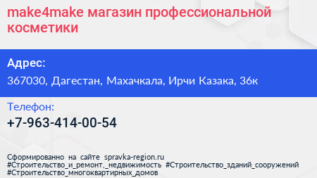 make4make, магазин профессиональной косметики по адресу 367030, Дагестан, Махачкала, Ирчи Казака, 36к в дальнейшем Организация, размещена в следующих категориях: