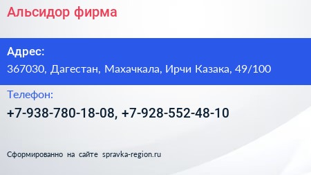 Альсидор, фирма по адресу 367030, Дагестан, Махачкала, Ирчи Казака, 49/100 в дальнейшем Организация, размещена в следующих категориях: