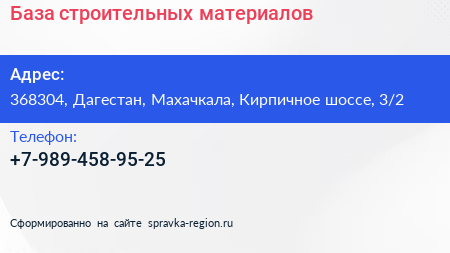 База строительных материалов по адресу 368304, Дагестан, Махачкала, Кирпичное шоссе, 3/2 в дальнейшем Организация, размещена в следующих категориях:
