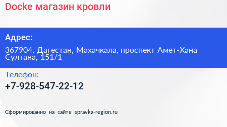 Docke, магазин кровли по адресу 367904, Дагестан, Махачкала, проспект Амет-Хана Султана, 151/1 в дальнейшем Организация, размещена в следующих категориях: