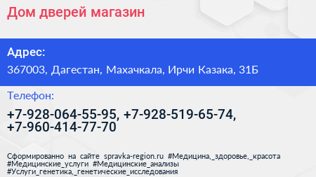 Дом дверей, магазин по адресу 367003, Дагестан, Махачкала, Ирчи Казака, 31Б в дальнейшем Организация, размещена в следующих категориях: