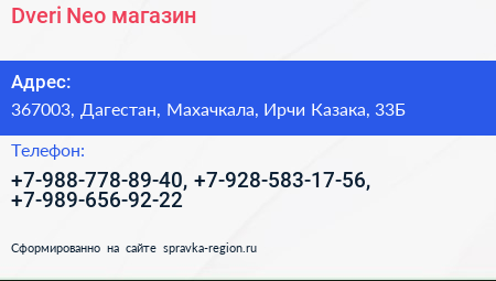 Dveri Neo, магазин по адресу 367003, Дагестан, Махачкала, Ирчи Казака, 33Б в дальнейшем Организация, размещена в следующих категориях: