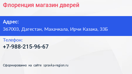 Флоренция, магазин дверей по адресу 367003, Дагестан, Махачкала, Ирчи Казака, 33Б в дальнейшем Организация, размещена в следующих категориях: