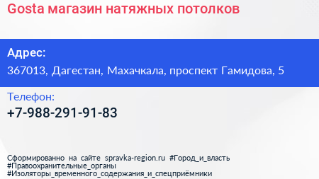 Gosta, магазин натяжных потолков по адресу 367013, Дагестан, Махачкала, проспект Гамидова, 5 в дальнейшем Организация, размещена в следующих категориях: