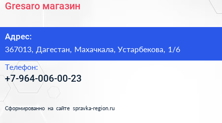 Gresaro, магазин по адресу 367013, Дагестан, Махачкала, Устарбекова, 1/6 в дальнейшем Организация, размещена в следующих категориях: