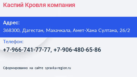 Каспий Кровля, компания по адресу 368300, Дагестан, Махачкала, Амет-Хана Султана, 26/2 в дальнейшем Организация, размещена в следующих категориях:
