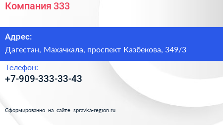 Компания 333 по адресу Дагестан, Махачкала, проспект Казбекова, 349/3 в дальнейшем Организация, размещена в следующих категориях: