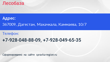 Лесобаза по адресу 367009, Дагестан, Махачкала, Каммаева, 10/7 в дальнейшем Организация, размещена в следующих категориях: