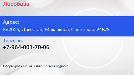 Лесобаза по адресу 367006, Дагестан, Махачкала, Советская, 24Б/3 в дальнейшем Организация, размещена в следующих категориях: