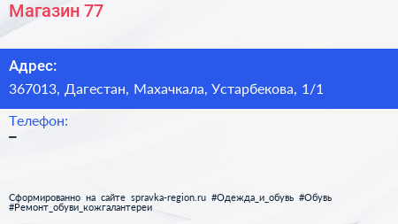 Магазин №77 по адресу 367013, Дагестан, Махачкала, Устарбекова, 1/1 в дальнейшем Организация, размещена в следующих категориях: