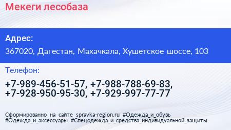 Мекеги, лесобаза по адресу 367020, Дагестан, Махачкала, Хушетское шоссе, 103 в дальнейшем Организация, размещена в следующих категориях: