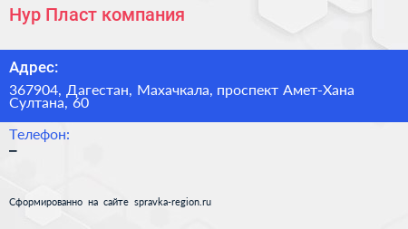 Нур-Пласт, компания по адресу 367904, Дагестан, Махачкала, проспект Амет-Хана Султана, 60 в дальнейшем Организация, размещена в следующих категориях: