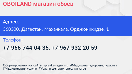 OBOILAND, магазин обоев по адресу 368300, Дагестан, Махачкала, Орджоникидзе, 1 в дальнейшем Организация, размещена в следующих категориях: