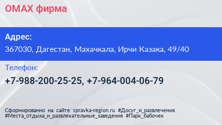 OMAX, фирма по адресу 367030, Дагестан, Махачкала, Ирчи Казака, 49/40 в дальнейшем Организация, размещена в следующих категориях: