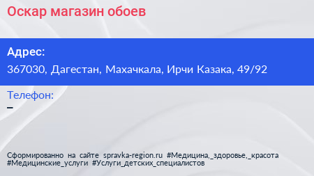 Оскар, магазин обоев по адресу 367030, Дагестан, Махачкала, Ирчи Казака, 49/92 в дальнейшем Организация, размещена в следующих категориях: