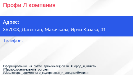 Профи-Л, компания по адресу 367003, Дагестан, Махачкала, Ирчи Казака, 31 в дальнейшем Организация, размещена в следующих категориях: