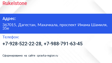 Rukelstone по адресу 367015, Дагестан, Махачкала, проспект Имама Шамиля, 35е в дальнейшем Организация, размещена в следующих категориях: