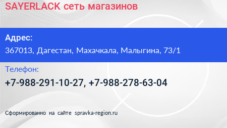SAYERLACK, сеть магазинов по адресу 367013, Дагестан, Махачкала, Малыгина, 73/1 в дальнейшем Организация, размещена в следующих категориях:
