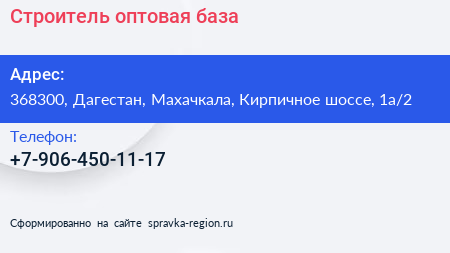 Строитель, оптовая база по адресу 368300, Дагестан, Махачкала, Кирпичное шоссе, 1а/2 в дальнейшем Организация, размещена в следующих категориях: