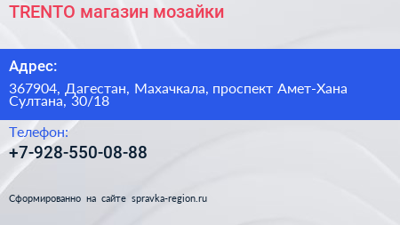 TRENTO, магазин мозайки по адресу 367904, Дагестан, Махачкала, проспект Амет-Хана Султана, 30/18 в дальнейшем Организация, размещена в следующих категориях: