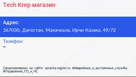 Tech-Krep, магазин по адресу 367030, Дагестан, Махачкала, Ирчи Казака, 49/72 в дальнейшем Организация, размещена в следующих категориях: