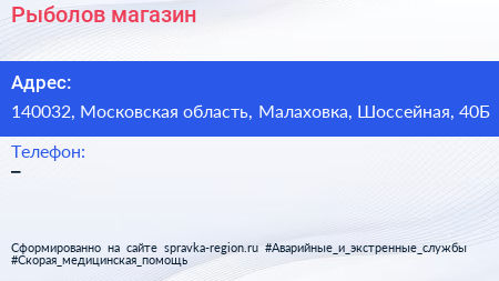 Рыболов, магазин по адресу 140032, Московская область, Малаховка, Шоссейная, 40Б в дальнейшем Организация, размещена в следующих категориях: